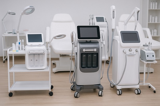 Máy chăm sóc da: Các loại máy sóng siêu âm, điện di, máy laser, máy RF giúp điều trị mụn, trẻ hóa da, xóa nhăn và làm sáng da.