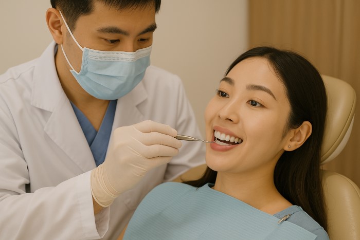 Gắn răng sứ & hoàn thiện: Bác sĩ lắp mão sứ, điều chỉnh khớp cắn tự nhiên và thoải mái.